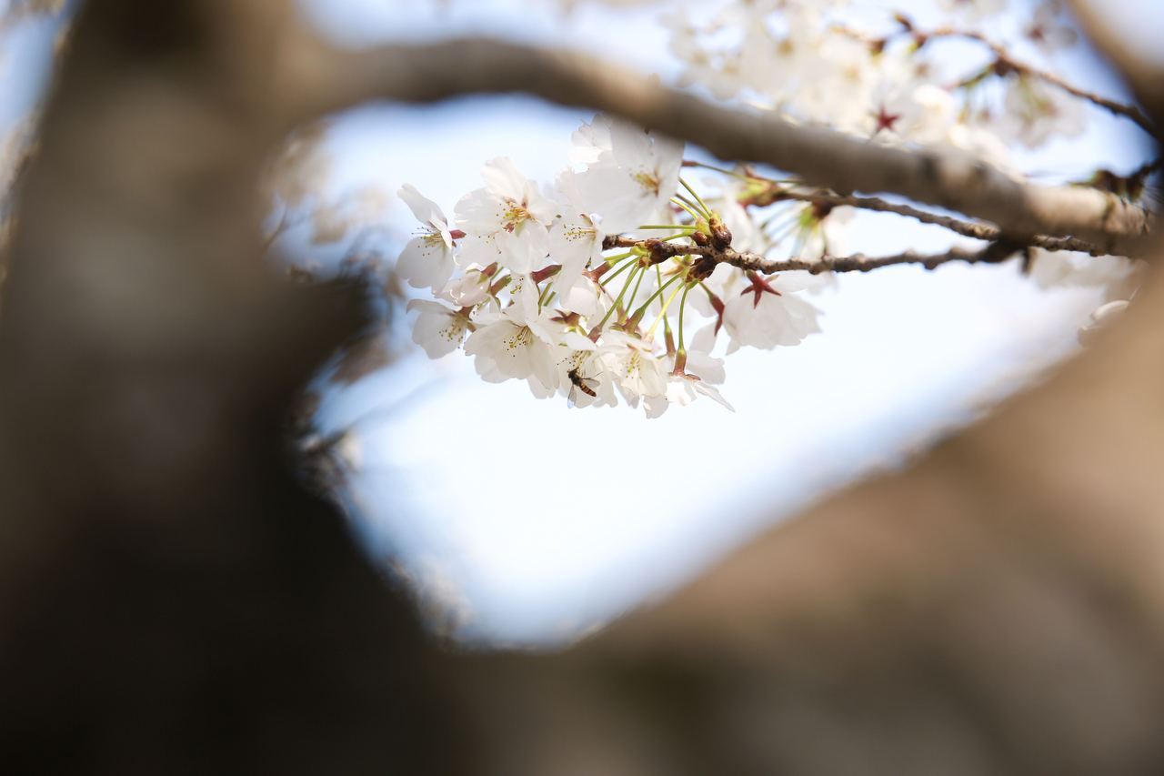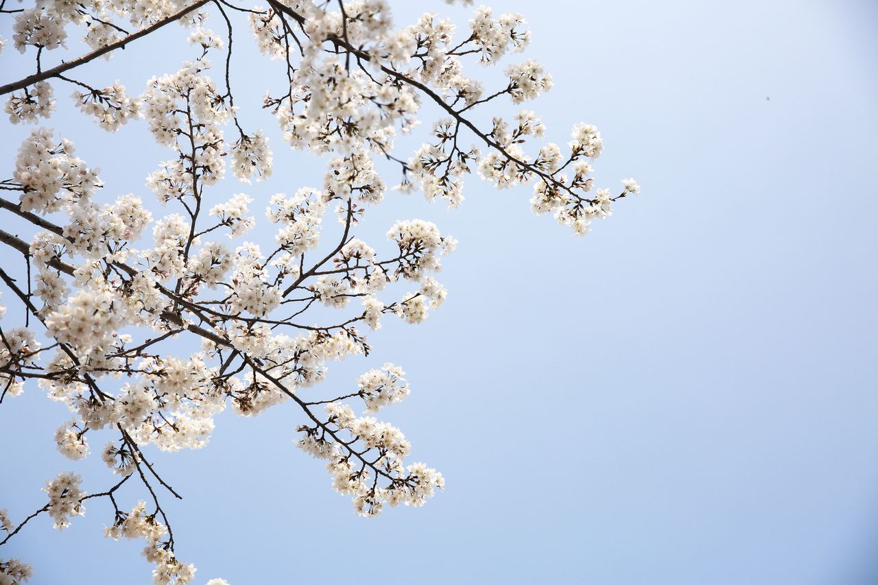 选择一个合适的角度,聚焦一束最美的花枝,给她一个特写,配上蓝天映衬。“咔嚓”一下,一张春日写真,完美“出炉”!