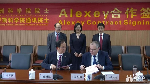仪式上,嘉兴学院校长盛颂恩代表学校与Alexey(阿列克谢)院士签约,聘任Alexey(阿列克谢)院士为嘉兴学院特聘教授和嘉兴学院医学院神经生物学研究中心主任。