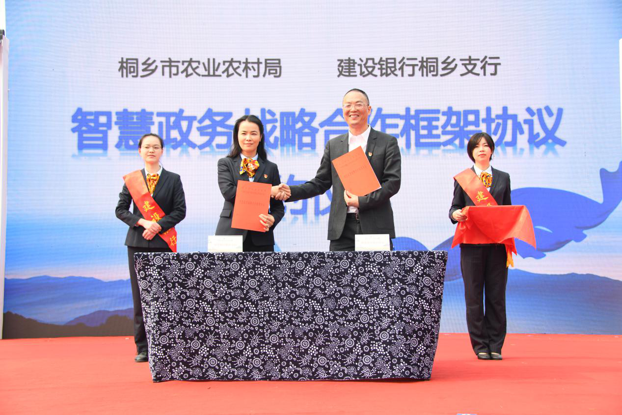 在节庆活动上,桐乡建行沈丽萍行长与桐乡市农业农村局陶稚彪副局长代表双方,签署《智慧政务战略合作框架协议》。战略合作的签署,意味着桐乡建行将进一步助推桐乡市农业农村发展,优化“三农”发展环境,全面支持乡村振兴示范地创建,高质量推动乡村经济腾飞。未来五年内,桐乡建行将累计提供不少于10亿元的融资总额度,努力打造便捷、高效、安全、多赢的农业农村金融生态,充分发挥双方的组织优势、管理优势,全力支持乡村振兴战略的实施。