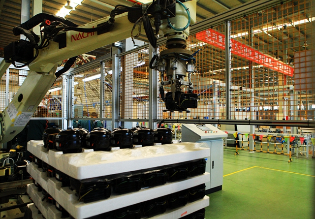 加西贝拉压缩机有限公司生产车间,日产10万台压缩机。