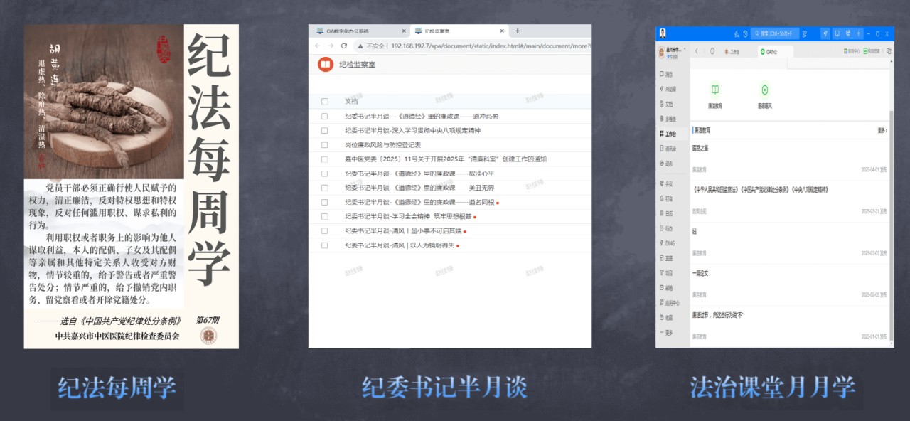 “叮!您有一份纪法学习任务待完成。”医院依托信息化平台,定期推送纪法学习提醒,精准对接“五维一体”学习体系,实现全员学习覆盖率100%。系统构建法治“显微镜”、“嘉中e课”实时学、纪法“每周学”、纪委书记“半月谈”、法治课堂“月月说”的五维学习网络。创新推动党纪学习教育与“三会一课”、主题党日、“六个一”红船组织生活等深度融合,采取支委班子成员领学模式,通过政策解读、案例教学、现场体验等形式,让纪律教育从 “纸质文件”走向“沉浸体验”,切实增强教育的针对性和实效性。