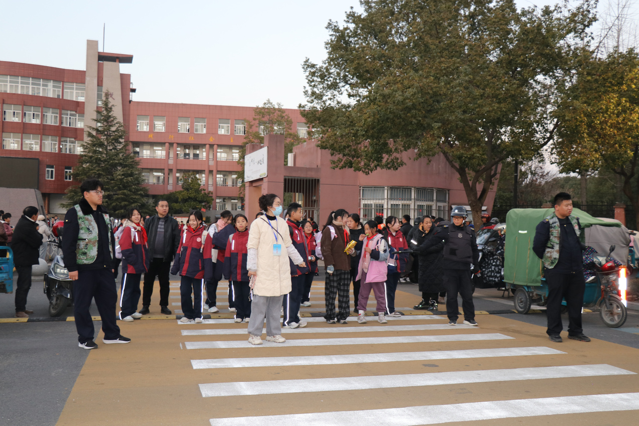 下午5点整,放学铃声响起,校园门口瞬间热闹起来。退役军人志愿者们迅速进入工作状态,化身“安全守护者”分散在路口两侧、校门口通道等关键位置。他们有的引导接送车辆有序停靠、平稳通行,耐心劝阻违规停车、随意穿行等行为,有效缓解交通压力;有的牵着低年级学生的手,小心翼翼护送他们穿过马路,叮嘱孩子们不追逐打闹、牢记交通规则;还有的主动协助学校安保人员维护现场秩序,为有需要的学生和家长提供帮助。绿马甲在夕阳下格外醒目,老兵们挺拔的身姿、温和的叮嘱,成为校园周边最温暖的风景线。