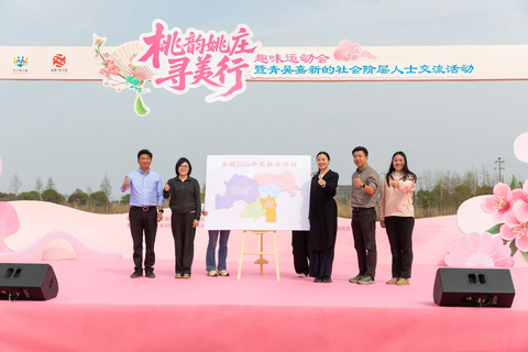 春风拂江南,桃韵满姚庄。4月2日下午,“桃韵姚庄寻美行”趣味运动会暨青吴嘉新的社会阶层人士交流活动在嘉善县姚庄镇北鹤村桃花岛景区举行。来自青浦、吴江、嘉善三地及长三角生态绿色一体化发展示范区先行启动区五镇的近百名新的社会阶层人士代表、统战干部齐聚一堂,以体育为媒、以交流为桥,共赴跨域联谊之约,共绘协同发展新蓝图。